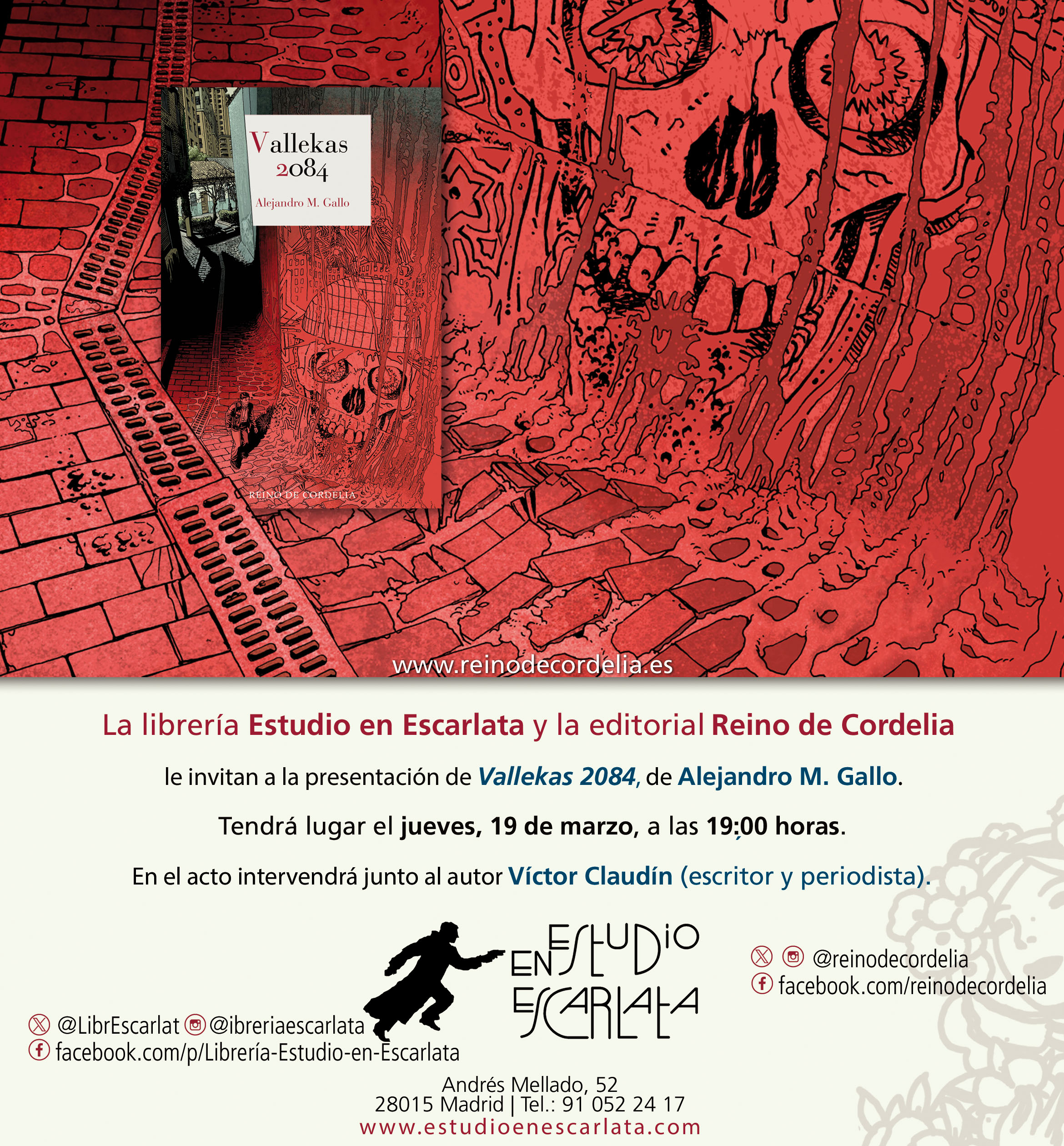Jueves 19 de marzo, 19:00 horas, presentación de “Vallekas 2084” de Alejandro Gallo, acompañado por el escritor Víctor Claudín.
